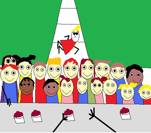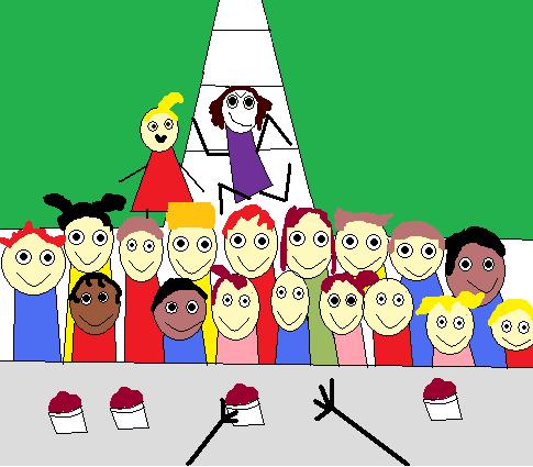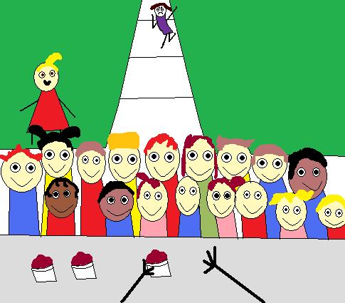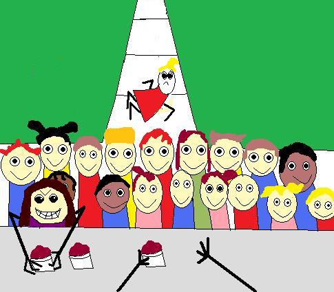 The 4th graders were outside having an ice cream party for doing well on some state standardized test.