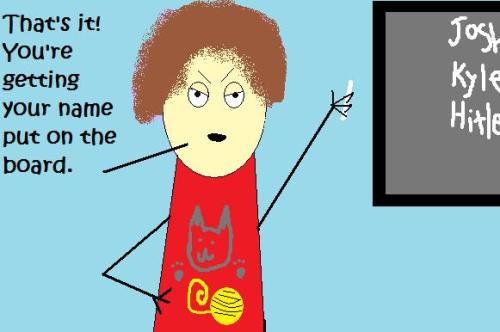 My teacher was standing in the hall watching us but then she got called into the principal’s office.