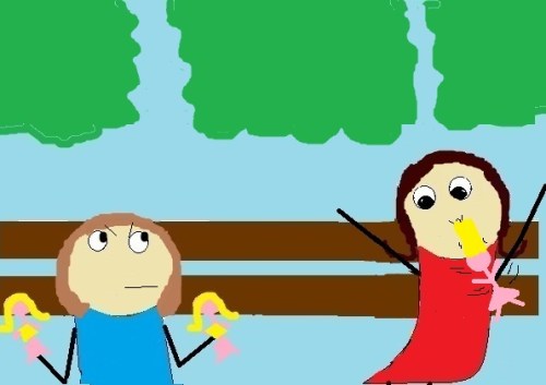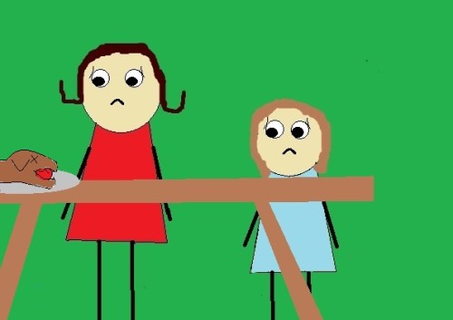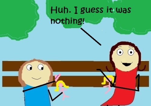 The only problem was, my sister and I were both bare feet-ed and the path between us and my parents was a landmine of stickers and thorns.