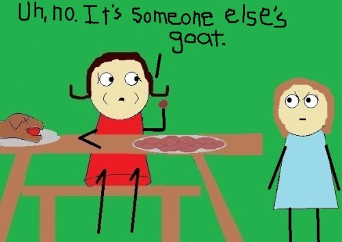 My mother warned me that they were going to have to use one of the goats for roasting at the party.