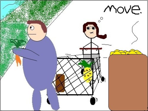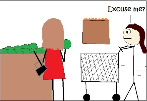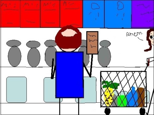 This post illustrates the frustration I feel while grocery shopping on a busy Sunday afternoon.